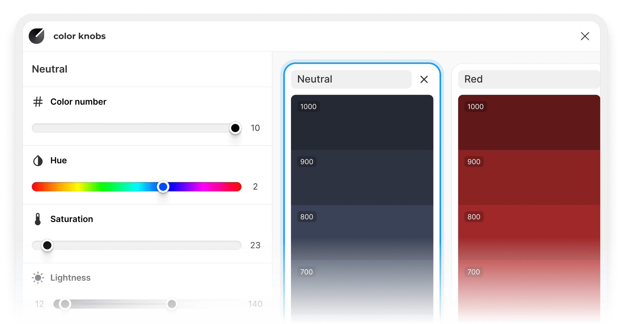 Leverage the latest Figma color variables feature to instantly generate all your Color Knobs colors within Figma. Quick and easy!